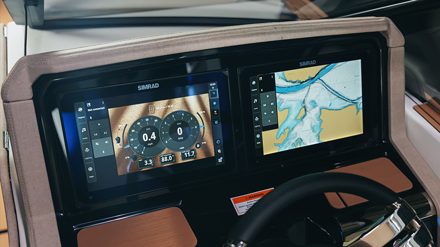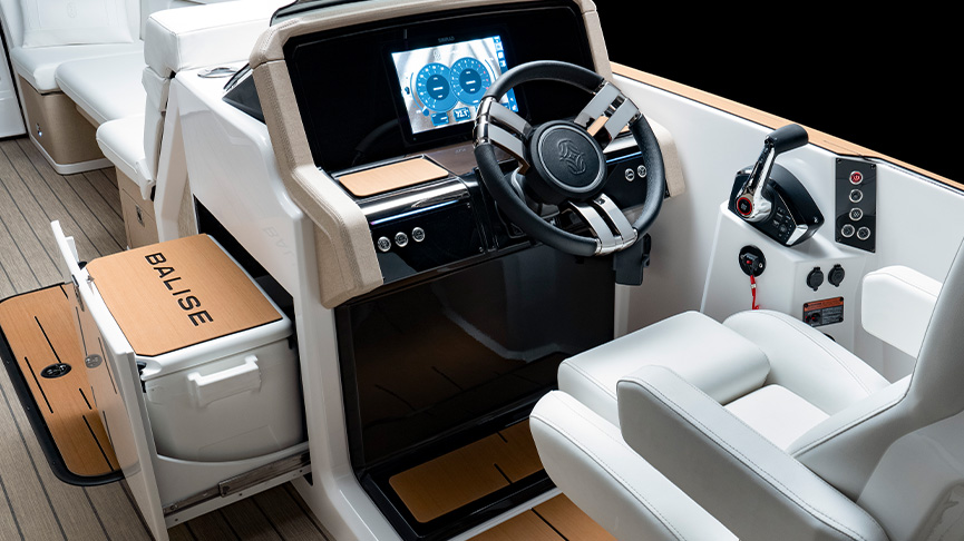 With powerful 4D sound designed to transcend the boundaries of ordinary listening, the Balise Immersive Audio System will outperform any vessel in the pontoon segment. With 12 strategically positioned speakers that can be heard from every seat, each calibrated to perfection, you'll find yourself immersed in an audio panorama that maximizes surround sound in the boat—and now from the water level. Our engineers have preserved the aesthetic appeal and optimized the functionality of your luxury haven by ingeniously concealing each speaker for visual sophistication. The best part—adjust the music from the boat or even while in the water.
