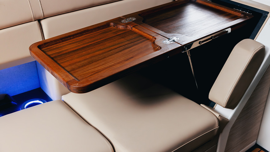 Our cool-touch upholstery stays 25% cooler than traditional marine vinyl, even in direct sunlight. Choose our dark Vintage Coffee interior without overheating.