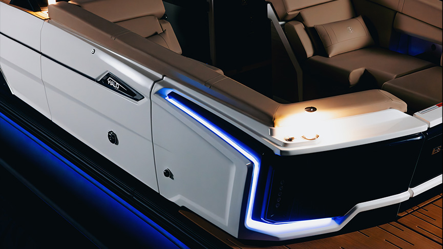 Accompanied with standard RGB lighting available in every color throughout every Balise, adding underdeck and underwater lighting will illuminate the exterior of your vessel, creating the perfect environment for hosting and entertaining on and off-board.